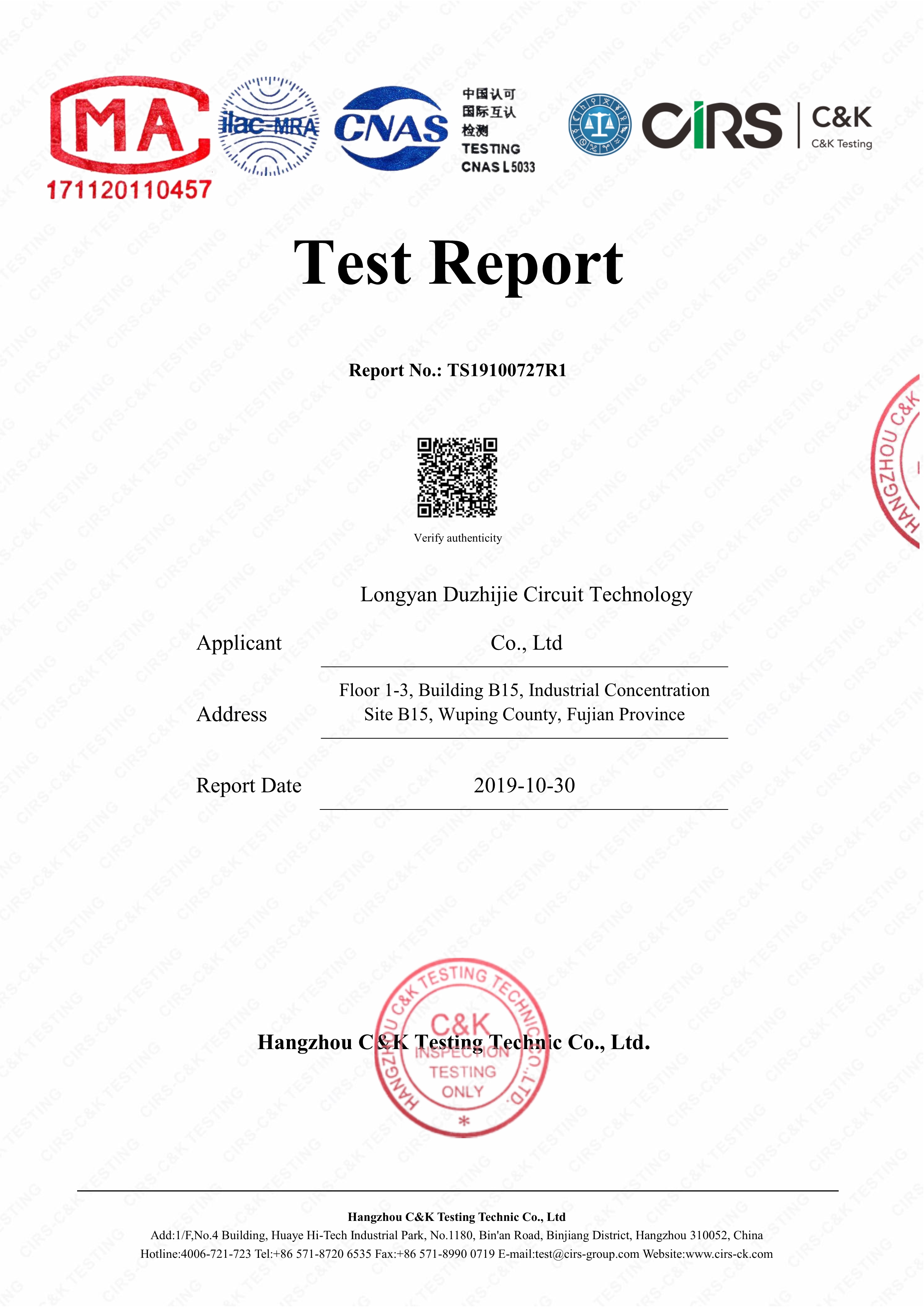 工廠搭建了ISO-9001、T/S16949、ISO14001的管理體系并通過認證,產(chǎn)品符合CQC、UL、IPC、RoHS等
